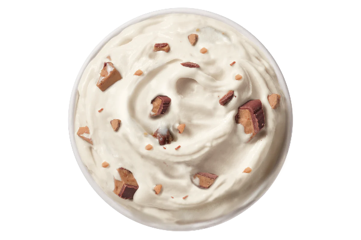 Our fudge cookie crunch covered with peanut butter flavoured soft serve and topped with REESE® Peanut Butter Cups pieces and chocolatey drizzle.