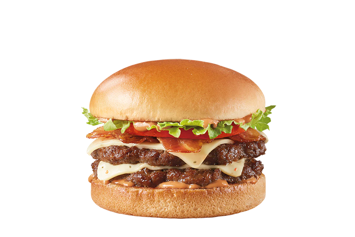 Price includes one Stackburger™, choose a single, double or triple. Single, Double (1/3lb*) or triple (1/2lb*) 100% seasoned real beef patties, topped with two types of perfectly melted cheese**, crispy Applewood smoked bacon, juicy tomato, white onion, crisp lettuce and pickles with ketchup and mayo on a soft and toasted bun. * Precooked weight **Processed cheese product