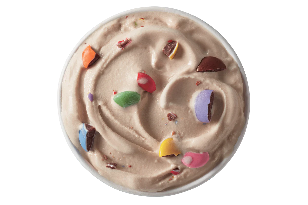 SMARTIES® candy pieces blended with chocolate sauce and blended with world-famous vanilla soft serve to Blizzard® Perfection.