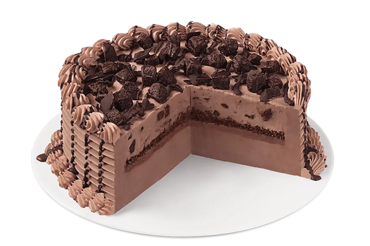 Our signature fudge and crunch center surrounded by our world-famous vanilla and chocolate soft serve. Cakes ordered on the DQ Mobile app cannot be customized; designs and flavours may vary by DQ restaurant location. If you would like to order a customized DQ cake, please visit DQcakes.com