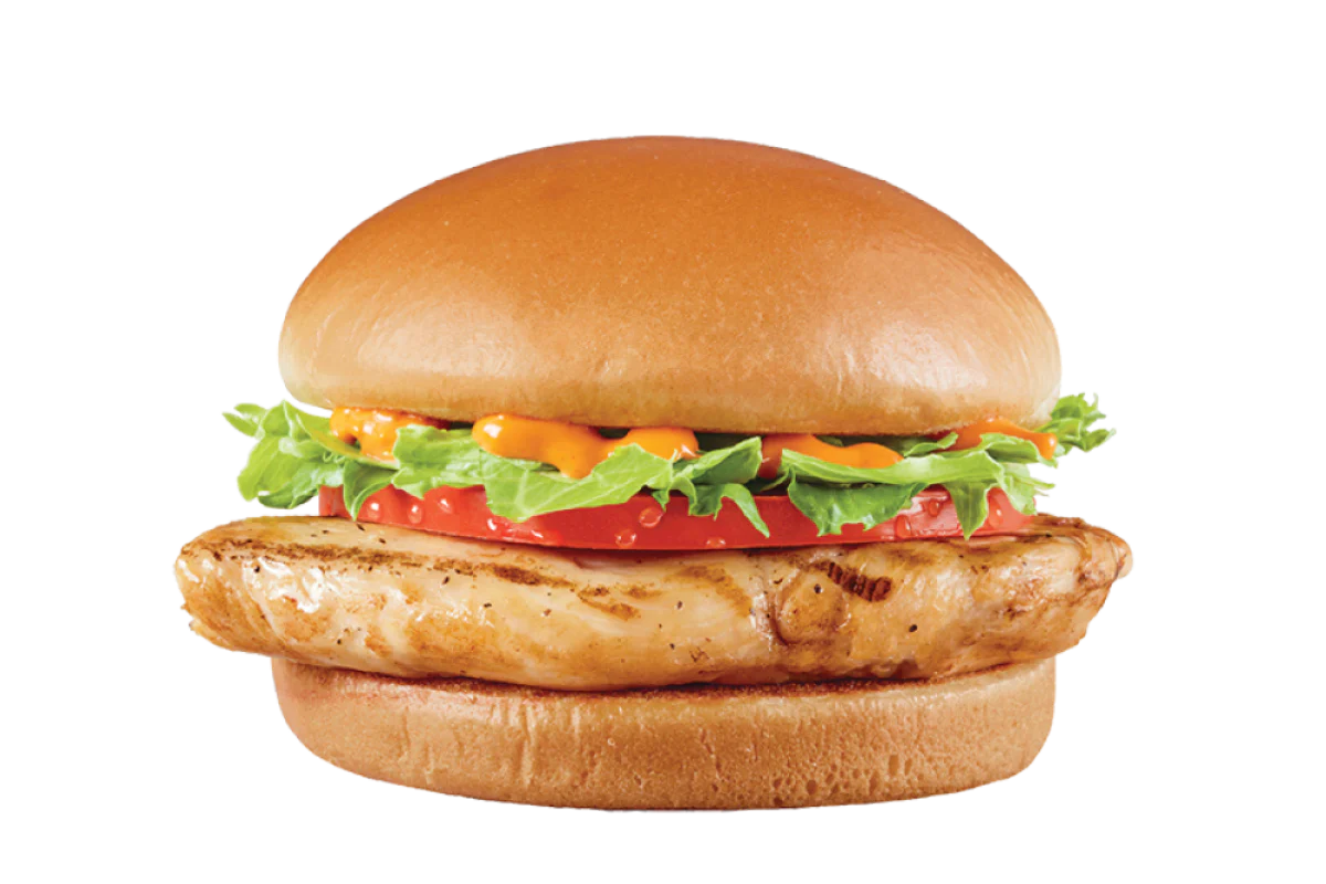All white meat seasoned grilled chicken filet topped with lettuce, tomato and FlameThrower® sauce, served on a warm toasted bun.