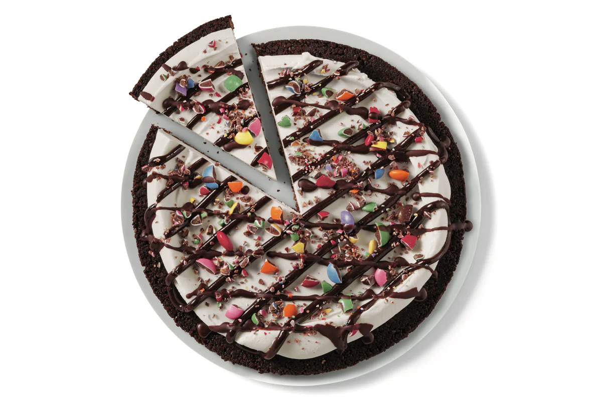 Our fudge cookie crunch covered with vanilla soft serve, topped with SMARTIES® pieces, fudge and chocolatey drizzle.