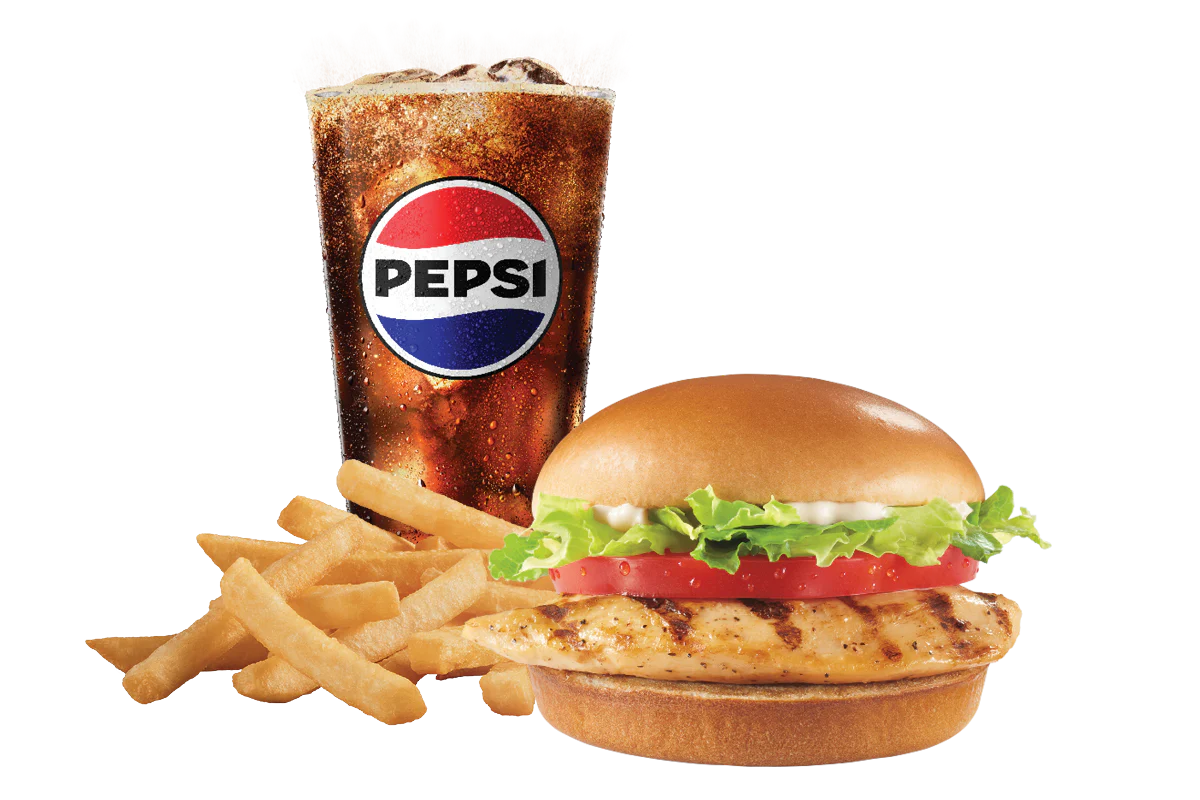 All white seasoned grilled chicken fillet topped with juicy tomato, lettuce and mayo, served on a warmed toasted bun. Served with fries and a 21oz drink.