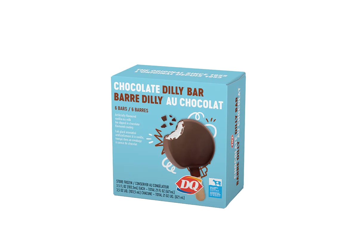 A DQ® classic! Soft serve with a delicious coating of chocolate. This nutrition information is for manufactured DILLY® bars, which are packaged in clear plastic. See packaging for DILLY® bars in paper bags.