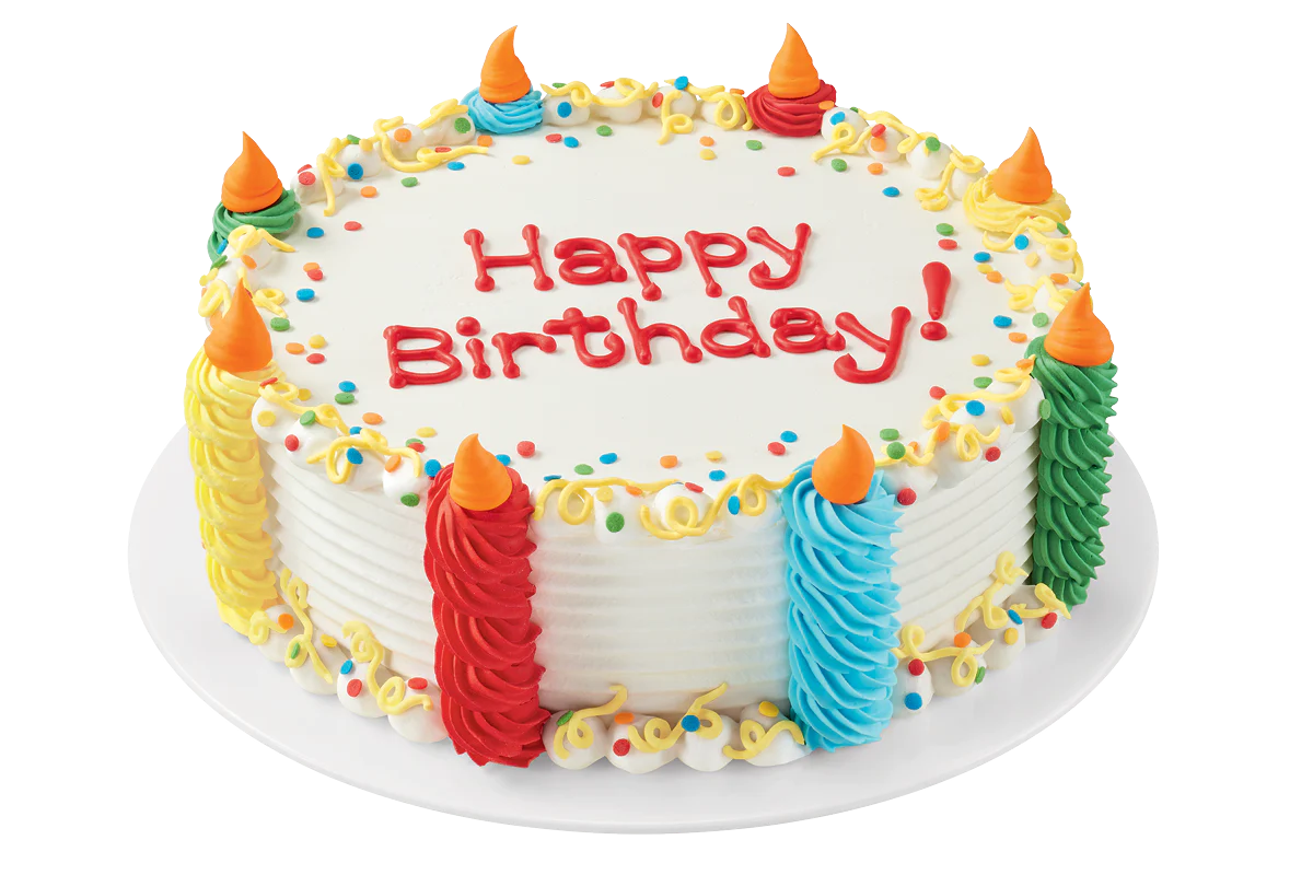 DQ® signature fudge and crunch center surrounded by our world-famous vanilla and chocolate soft serve and decorated with white icing border and bright quins. Cakes ordered on the DQ Mobile app cannot be customized; designs and flavors may vary by DQ restaurant location. If you would like to order a customized DQ cake, please visit DQcakes.com