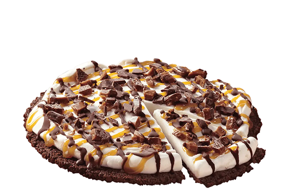 Our fudge cookie crunch covered with vanilla soft serve, topped with SKOR® candy pieces, caramel and chocolatey drizzle.