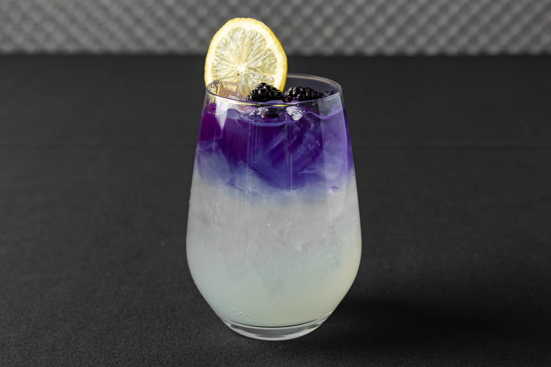 Blue Curacao, Raspberry Sourpuss, lemonade, peach schnapps