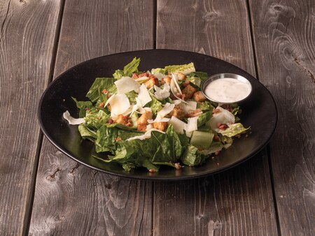 Crispy romaine lettuce served with a garlic Caesar dressing and topped with Parmesan cheese, croutons and bacon bits.