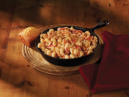 Spiral pasta in a cheesy white wine lobster cream sauce, 2oz tender lobster meat, baked in a skillet until golden brown. Served with our freshly baked cornbread.