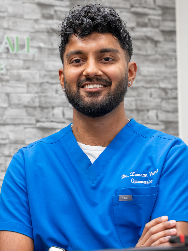 Dr. Zamaan Valani received his Bachelor of Science (BSc) with honors in Biology from the University of Alberta in 2020. He went on to complete his Doctor of Optometry (OD) degree at the New England College of Optometry as the Valedictorian of the class of 2024. Dr. Valani has a passion for pediatric myopia control, managing ocular disease, fitting contact lenses and treating dry eye.
