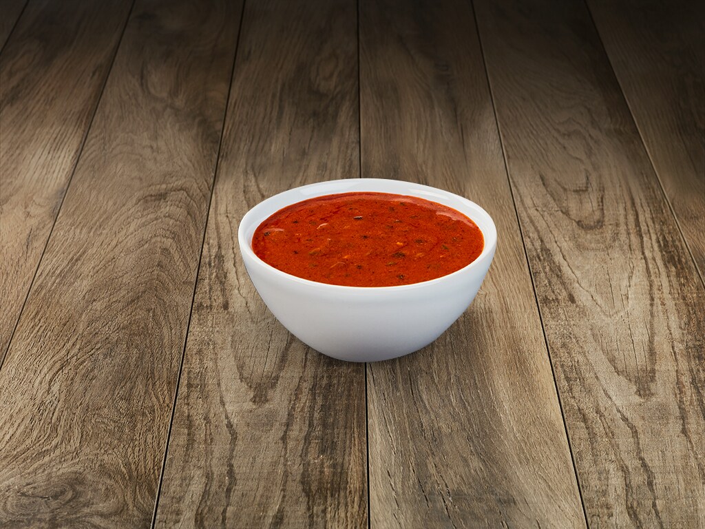 Family-sized portion of hot chicken sauce. Suggested serving.