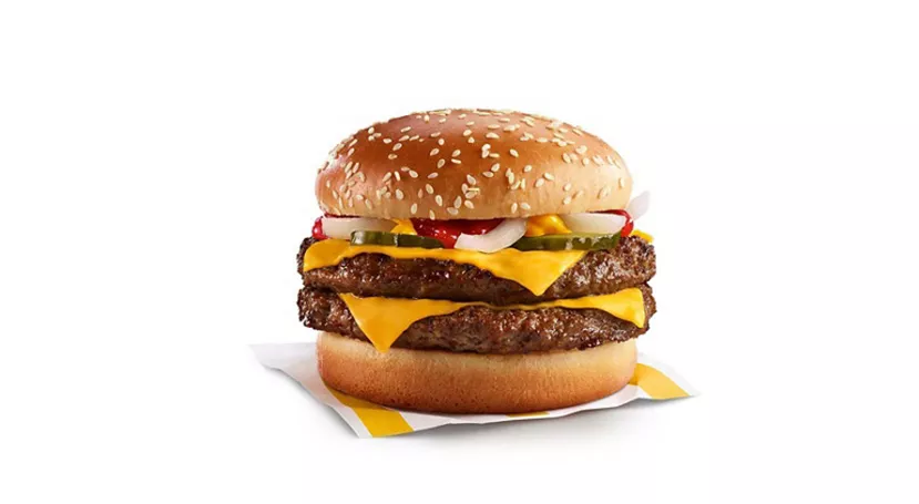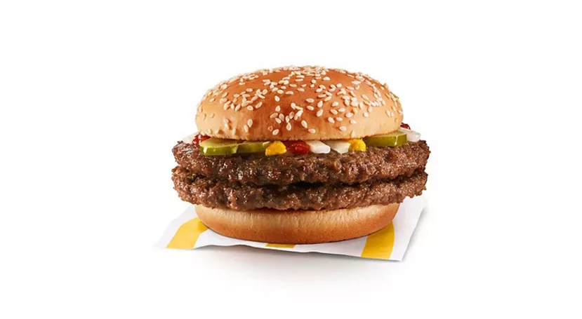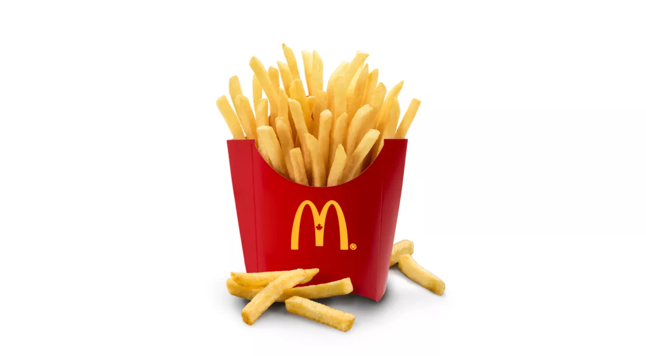 Made with 100% Canadian beef patty, pickles, onions, and a slice of melted processed cheese, all between a freshly toasted bun, it’s no wonder this is a crowd favourite. Available with your choice of apple slices or mini/small fries, yogurt and small/child-size drink (as applicable).