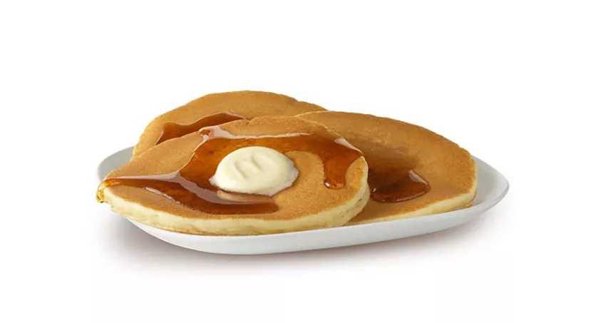 Fluffy, golden-brown bites of heaven. These melt-in-your-mouth hotcakes are topped with butter and syrup. Available with your choice of apple slices or hash brown, yogurt and small/child-size drink (as applicable).