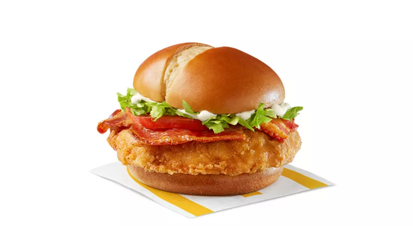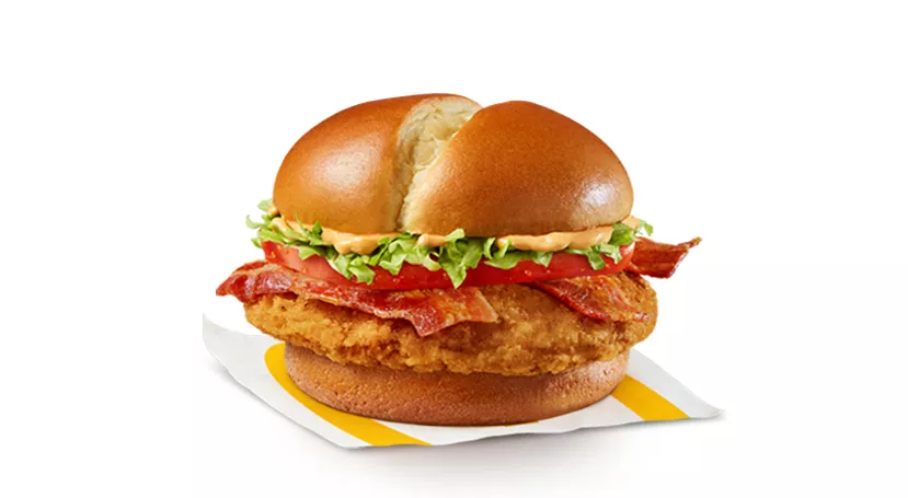 Made with a plain bagel, and topped with a freshly cracked Canada Grade A egg, hickory smoked bacon, sliced tomato and crisp lettuce.