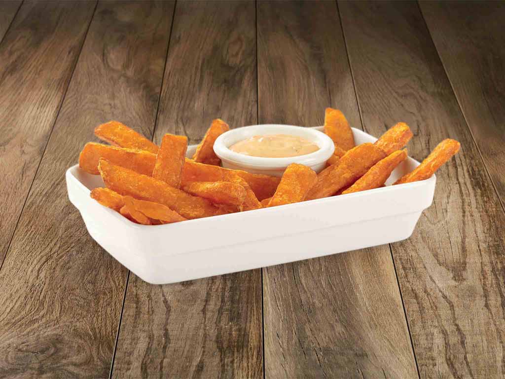 Chicken fillets, cheese sticks, chicken wings and sweet potato fries, served with 5 delicious sauces. • 4 crispy chicken breast fillets • 4 cheese sticks • 4 chicken wings • sweet potato fries • 1 fillet sauce of your choice • 1 marinara sauce • 1 wing sauce of your choice • 1 roasted red pepper mayonnaise • 1 serving of St-Hubert BBQ sauce