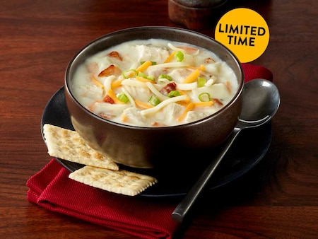 A bowl of rich and creamy soup, loaded with potato, bacon, and our famous Rotisserie Chicken.