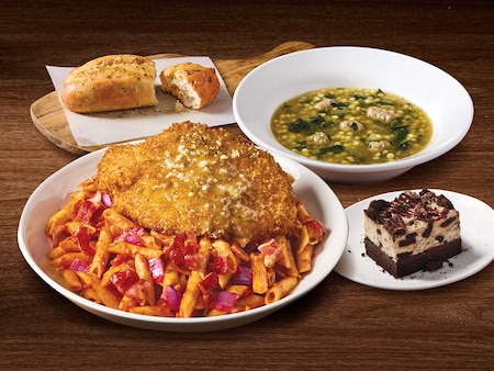 All of your East Side Mario's faves featuring Mario's Jr. Chicken Parm, classic Fettuccini Alfredo and a ½ pound slice of our house made 12 layer bolognese lasagna.