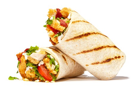 Soft tortilla wrap toasted over the flame-grill, filled with crispy seasoned breast and your choice of toppings and sauces.