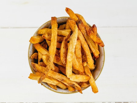 Hand cut, tossed with sea salt with a side of dip. Gluten allergy friendly.