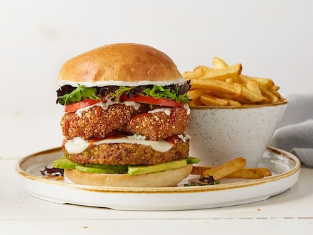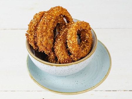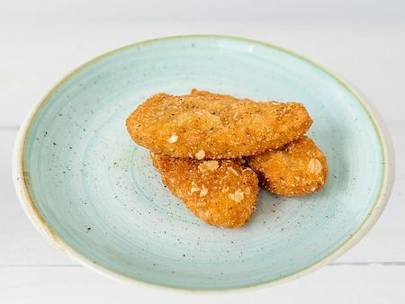 Hand-crafted, coated with breadcrumbs & puffed quinoa, choice of dip. Gluten allergies cannot be accommodated on this menu item.