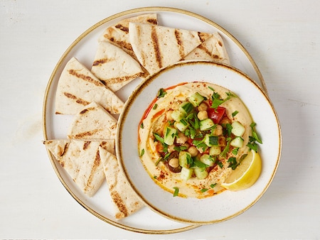 Sumac, parsley, evoo, chili oil, chickpeas, tomato, cucumber, lemon, grilled pita. Gluten allergies cannot be accommodated on this menu item.