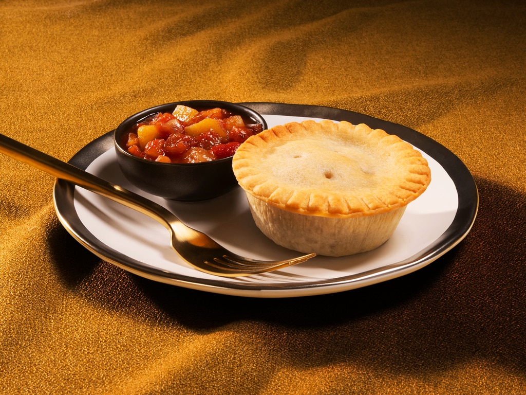 Our generous mini meat pie, served wtih fruit ketchup. Complete your meal with this holiday classic! Suggested serving. For a limited time.
