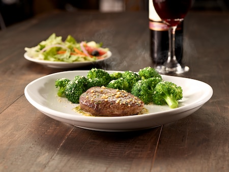 Grilled 6 oz sirloin topped with garlic herb butter. Served with parmesan garlic broccoli. Breadsticks not included to accommodate dietary needs. Available upon request.