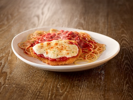 Two lightly fried parmesan-breaded chicken breasts with our homemade marinara and melted Italian cheeses. Served with a side of spaghetti.