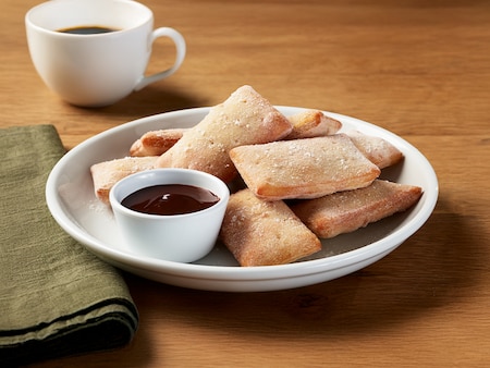 Fried doughnuts tossed in vanilla sugar. Served with raspberry or chocolate sauce.